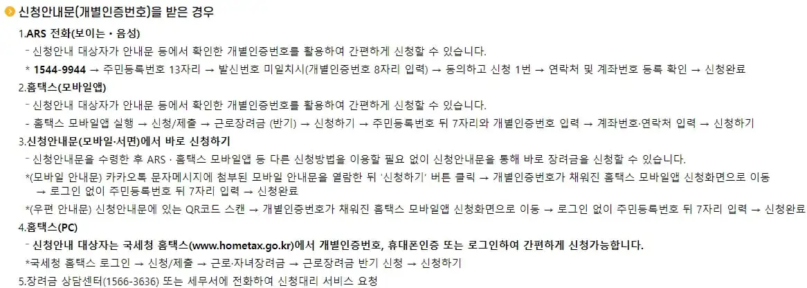 - 상반기소득 반기 근로장려금 지급시기 : 2023.12월 중