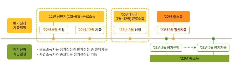2023년 상반기 소득에 대한 반기신청 시기는 아래와 같습니다.