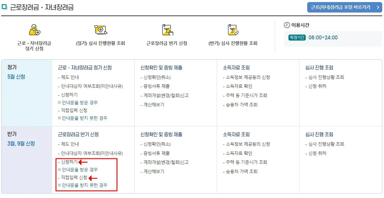 - 하반기소득 반기 근로장려금 지급시기 : 2024.6월 중